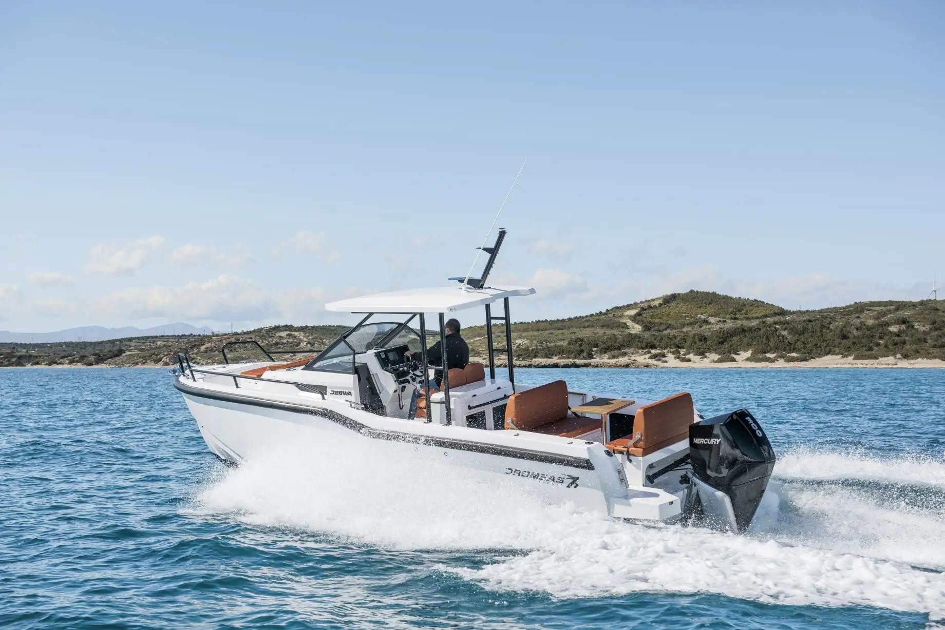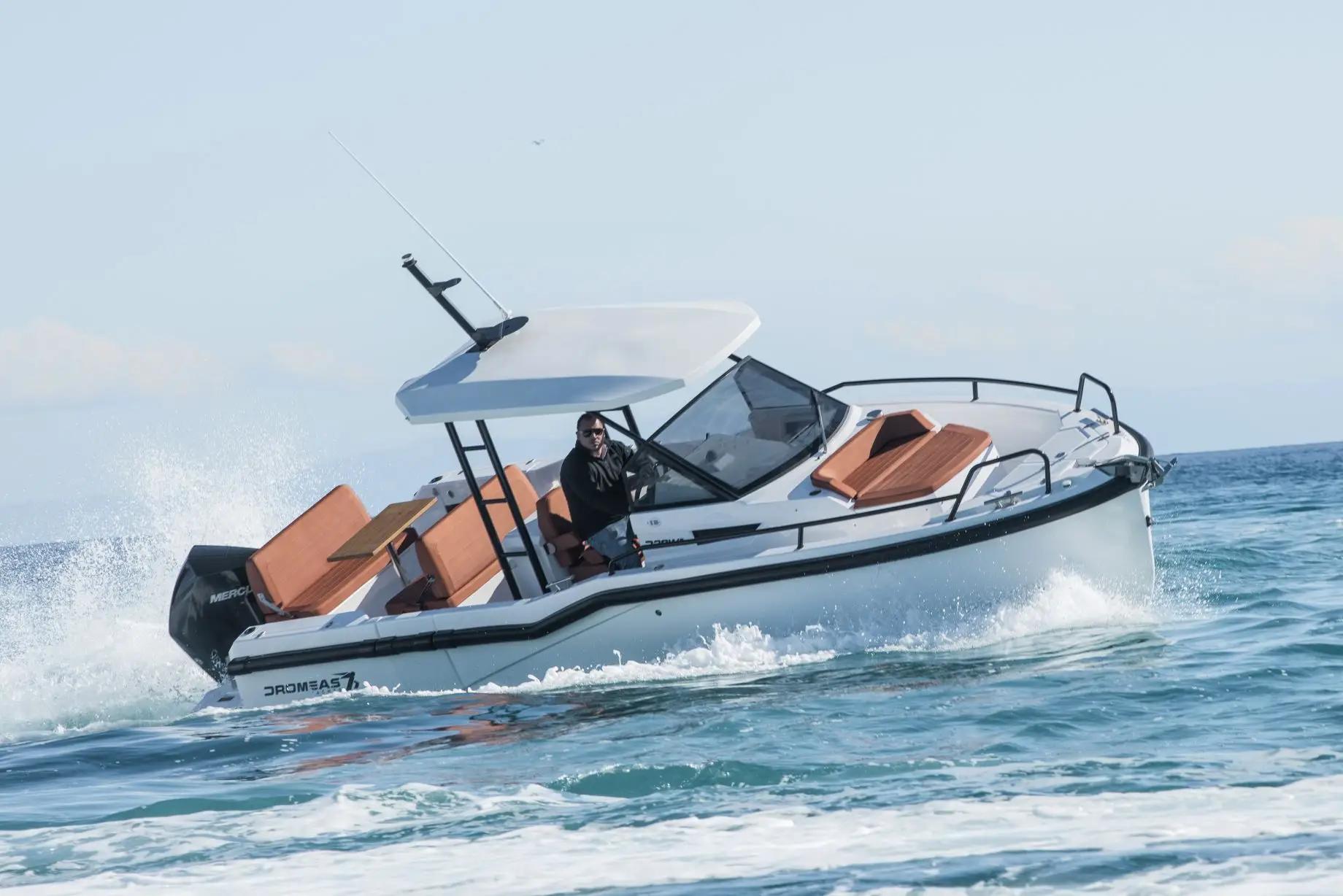 Dromeas是欧洲新兴休闲游艇品牌,由游艇工程师Efe Kuyumcu先生于2017年创立,Efe Kuyumcu先生曾经是一名出色的帆船奥运选手。Dromeas致力于制造高性能、高品质的小型休闲游艇,目前推出的型号有28呎、33呎和38呎,每个型号都有钓鱼和休闲两种款式。